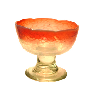 金赤に乳白ぼかし、輪つなぎ文の凝ったつくりの氷コップ。明治~大正期。