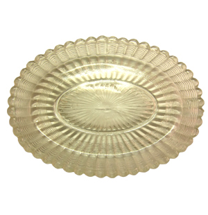 籠目長円形皿。ぼってりした、いかにも”ガラスの塊”な質感溢れる皿。明治後期。
